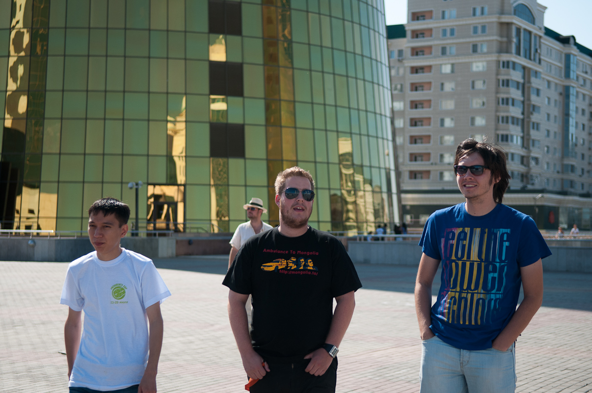 “My name is Elia Kabanov, I'm blogger (metkere.com) and journalist based in Novosibirsk. A friend of mine from Kyrgyzstan told me about your trip and I'm really excited about it. Is there any chance you'll be visiting Novosibirsk on the way to Mongolia?”This friend, linking Kyrgyzstan to Siberia, turned out to be Twitter Girl Nuraika, whom we had met in Bishkek, and with such an invitation we obviously had to visit Novosibirsk. There we arrived in the afternoon and met with this Elia who had invited us, and he introduced us to his friends Ilya Taratukhin and Denis Baluev. We ate a very late lunch (I got to eat Beef Stroganoff in Russia for the first time in my life; it was excellent), learned to know each other and quickly figured out that we got along absolutely splendidly. Everybody spoke good English, so we had a common language, and everybody was interested in the internet, so we had a common starting point for conversations. Couldn’t be better.