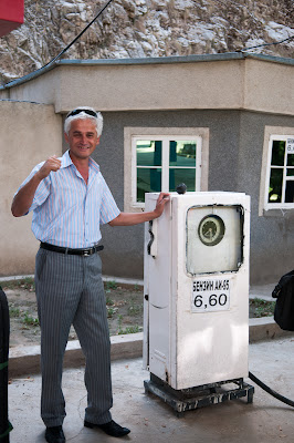 So we set off in the morning, stopping to refuel before the mountains at a small petrol station run by a man named Iskandar who was bemused by us admiring his original 1969 vintage petrol pump, still working flawlessly, and proudly showing the new modern Chinese built petrol pumps being installed now.