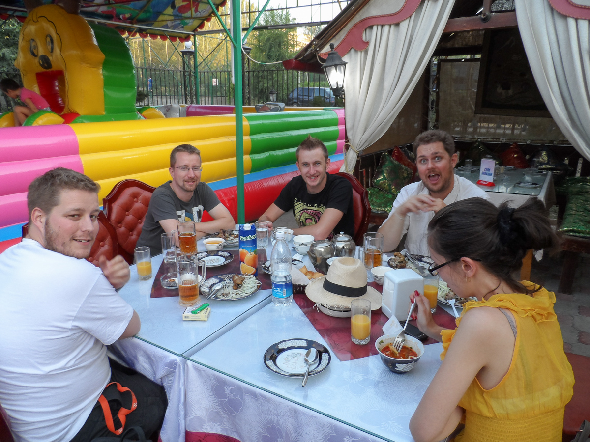 It was now early Sunday afternoon, so we decided to use Jonas’ hospitality to stay the night in Dushanbe (using the afternoon for doing laundry, relaxing, uploading photos on the internet, etc.) and then drive on again in the morning. Jonas took us for dinner at an excellent Chinese restaurant, well hidden in one of the big business hotels in town, which’s existence shouldn’t be surprising considering the considerable amount of Chinese working in Tajikistan, building roads, tunnels, houses, and whatnot. (There were even a few road signs printed only in Tajik and Chinese, without any Russian or English.)