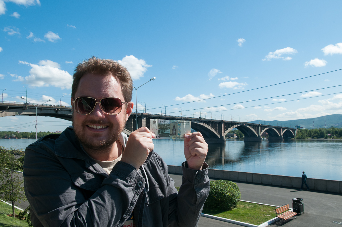 The next day we decided to take a day’s break from driving and instead do some sightseeing in Krasnoyarsk. Luba agreed to have us staying one more night in her kitchen but would have to go to work in the evening, so she called a friend of hers, Marina Volovik (also on CouchSurfing) and asked her to take care of the apartment key and us that night.