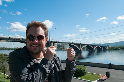 Then we took a taxicab down to the city center where we met with Sergey again, who was very sorry that we hadn’t arrived earlier and that we couldn’t stay longer, for there were so many things that he would have liked us to have done and to do. He then went back to work with a promise to call us later, while we had an excellent high-end lunch in one of the new posh restaurants overlooking the Yenisei river.