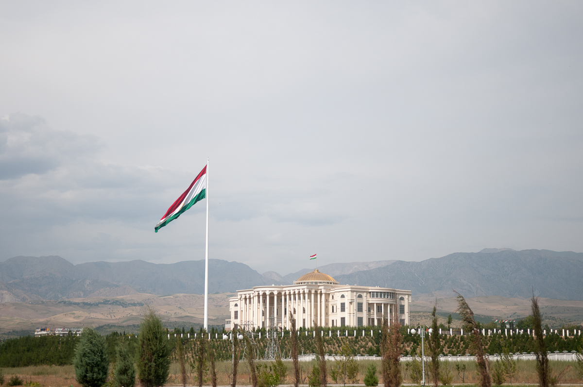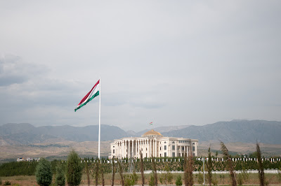 On the assumption that we had already had quite enough of the local grilled meat and bread, Jonas took us to a late lunch at a nice Lebanese restaurant and later on a sightseeing tour of Dushanbe, where we saw such sights as the world’s tallest flagpole (165 m, ordered built by the dictator to show the greatness of his country) and the new American embassy outside of town, isolated and fortified like a military base.