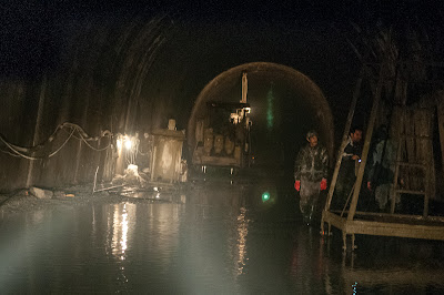 Most of the tunnel has pavement, which legions of Kamaz trucks and freezing winter upon even more freezing winter has beaten and broken into black ragged ridges which would have served well for the land of Mordor. The water raining down from above fills the deeper rifts and the potholes with water, making it impossible to judge how deep they are. In many places, the underlying concrete has been broken so that its steel rods now poke out of it, threatening to puncture tyres or get stuck somewhere where it can tear your vehicle apart. In two areas of the tunnel, the bottom is deep enough to have amassed small lakes of water which are necessary to drive through without being able to see what’s below the surface, trying to guess a passable way across by observing vehicle in front of you. (Piece of advice: If you find yourself alone in front of such a body of water, wait for a Kamaz truck to come and drive before you, and then the way it sinks and rises out of the water and the waves created by its wake will give a usable idea about what hides below the surface.) There were loads of men working with heavy machinery to repair and improve the tunnel, making the already narrow tunnel even more crowded, but they were hopelessly outnumbered against the upcoming winter and the number of heavy trucks, breaking the tunnel apart again faster than they could ever repair it.