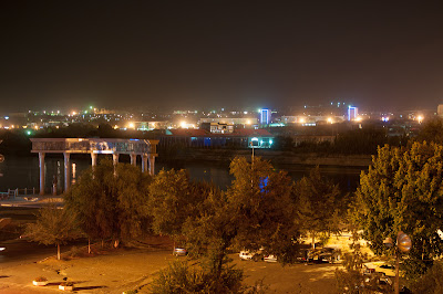The dinner party in the garden of a fancy restaurant, with traditional food from the region, was absolutely great. The longer we sat and ate and drank, the more people joined us, and everyone was enjoying themselves immensely. Sabina is a journalist, and made an interview with me about our journey. One of the people to join later, Nuraika, turned out to have received the Best Personal Twitter Account Award and provided her fan following with live updates of our party from her mobile phone. We immediately renamed her Twitter Girl. (A week later, she would suddenly and unexpectedly be of great importance to us.)