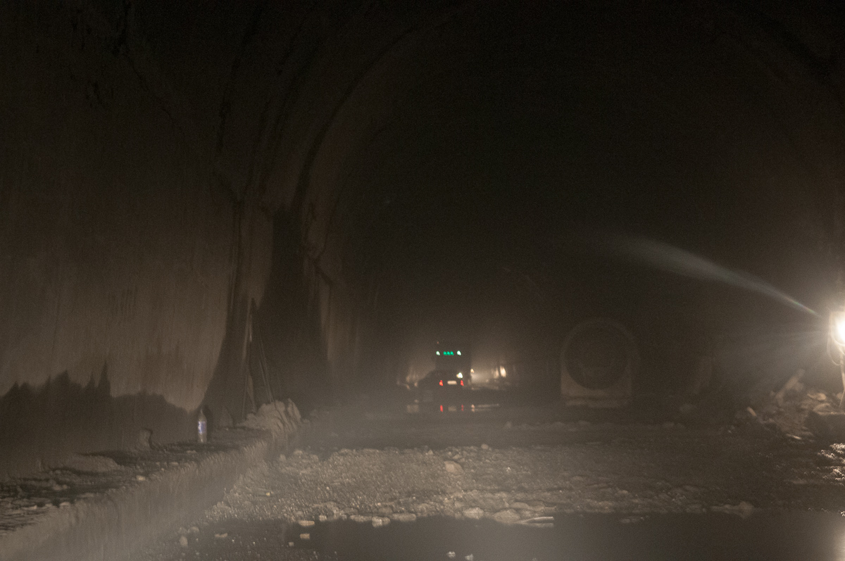 The Anzob Tunnel is known by many nicknames, all of them accurately describing it: “The Dangerous Tunnel”, “The Tunnel of Death”, “The Evil Tunnel”, “The Scary Tunnel”. It’s only a mere 5 km in length, but in our broken car and not knowing what lay ahead in the darkness, those were the longest 5 km I’ve ever driven. The tunnel is dark, very dark. There are, obviously, no lights in the tunnel itself and a thick smoke of engine exhausts, dust and water vapour severely limits the power of vehicle headlights. Despite being under construction for years on end, the tunnel is still far from finished and only parts of it have a ceiling to seal off the naked rock and prevent water from dripping through the mountain above. This rain from the naked rock above, together with the smoke and the incredible noise bouncing between the rock walls is what mostly makes the tunnel so scary.