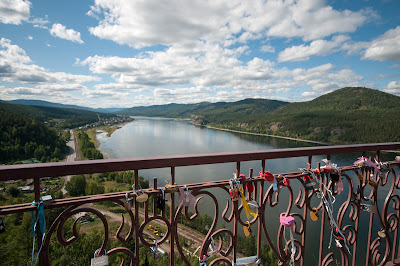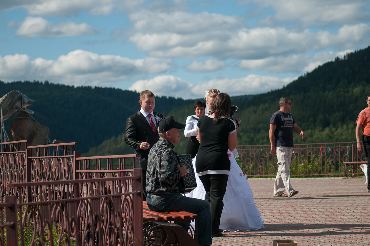 We lingered at the vantage point, enjoying the view and the weather, chatted with some wedding party guests (one of them a Russian Jew visiting from Lebanon—quite globalized this hilltop in Siberia), and listened to a single accordionist playing Russian folk songs in brave competition with the heavy electronic bass rhythm from a restaurant nearby.