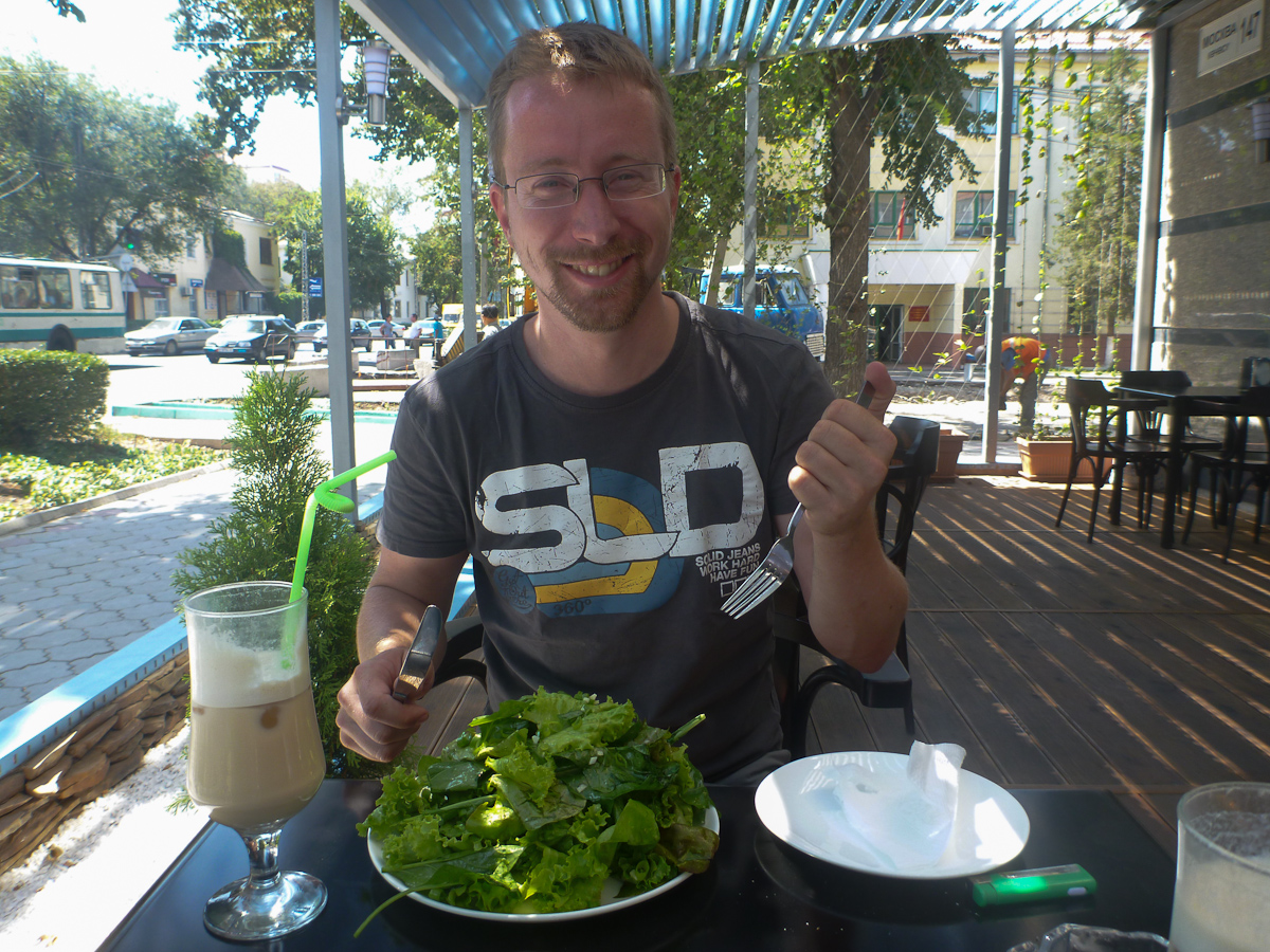 The next day it was time to meet some friends. Also in this city, just like in Baku and Tbilisi before, there were people here who knew Ihar and had received his mail about our journey, so we had Konstantin Zolotarev, Sabina Reingold and Tolkun Umaraliev awaiting our arrival. They had in their turn also told their friend Michael Ivashchenko about us and after we we had changed hotels to a better and more charming one of their suggestion, we took a long lunch at a nice café in the city center and then waited for Michael to come and pick us up.